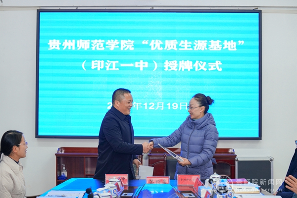 12月19日上午,石培新一行赴印江一中举行best365手机版官方网站优质生源基地(印江一中)授牌仪式。印江县副县长张秦杰,印江县教育局局长李永建,印江一中党委书记张金勇及印江一中班子成员出席仪式。