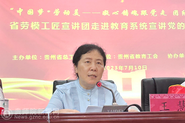 王慧强调,要通过党的创新理论宣讲活动,推动习近平新时代中国特色社会主义思想和党的二十大精神在教育系统职工群众中落地生根,让党的创新理论传得更开、更广、更深入,引导广大教职工更加自觉用习近平新时代中国特色社会主义思想和党的二十大精神培根铸魂、谋划工作、指导实践、推动发展。希望在场教职工认真聆听宣讲,自觉在党的创新理论科学指引下,坚定信念信心、笃定奋进步伐、创造美好未来,奋力在新时代新征程上为贵州高质量发展和现代化建设贡献力量、展现担当、彰显作为!