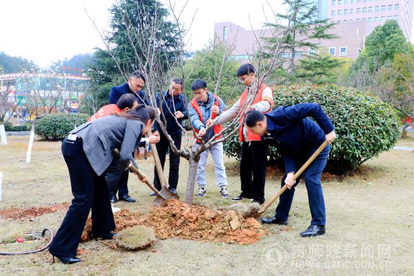 在小雷锋们的带领下,校党委书记石培新和校党委委员、副校长任洁、相关部门的老师们也积极参与到校园植绿护绿的活动中,大家紧密配合,扶正树苗、挥锹填土,各个环节衔接有序,新栽植的苗木沐浴着和煦的春风,绽放出勃勃生机。