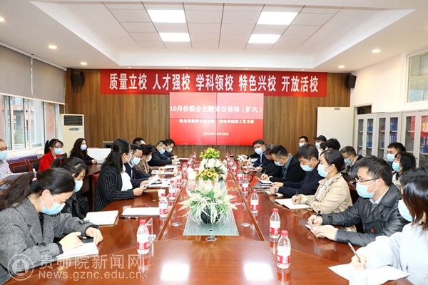 本网讯 10月28日,机关党委第七党支部、物电学院教工党支部在物电学院会议室联合开展10月份主题党日(扩大)活动,两个支部全体党员和教职工参加活动。校党委副书记熊世桓讲专题党课。活动由机关党委第七党支部书记、质评办主任任翠娟和物电学院教工党支部书记吴永刚联合主持。