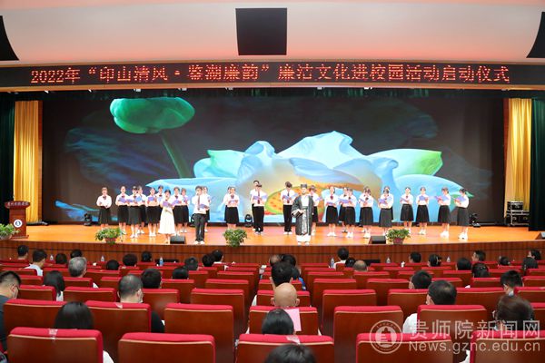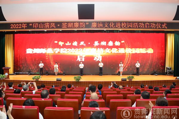 仪式上,吴寿文、李娟、石培新、韦维、韩兵兵、陈锟为“印山清风·鉴湖廉韵”活动揭幕。学校音乐舞蹈学院副院长、纪检委员王晓演唱廉政歌曲《最稳的靠山最深的牵挂》;文学与传媒学院学子朗诵了《爱莲说》。