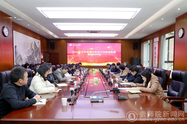 会上,校党委委员、纪委书记韩兵兵同志传达了《贵州省委(党组)网络意识形态工作责任制实施细则》;校党委宣传部部长薛璞和统战部部长张婷分别汇报了best365今年下半年的意识形态工作和宗教工作情况,为大家增强问题意识,找准做好学校意识形态工作和宗教工作的着力点提供了基本遵循。在工作交流发言环节中,校团委书记罗荣、学报编辑部主任赵德肃、旅游与文化学院党总支书记冯建国、音乐与舞蹈学院党委书记付巧分别从党群部门、教辅部门、二级学院的角度总结了意识形态工作的经验,并对新形势下如何抓好基层意识形态工作进行了深入探讨。