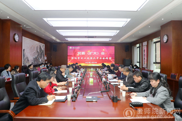 本网讯 11月15日下午,校党委召开扩大会议,专题传达学习党的十九届六中全会精神。校党委书记石培新主持会议并讲话,研究部署学校贯彻落实举措。校党委委员及相关职能部门党员领导干部和各二级基层党委、党总支,直属党支部书记参加会议。校长韦维、副校长余维祥等无党派人士及民主党派代表列席了会议。