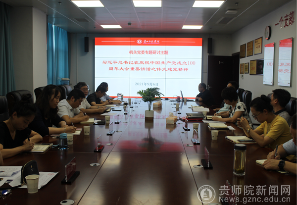 本网讯 为有效推进“习近平总书记在庆祝中国共产党成立100周年大会重要讲话精神”入脑入心、落实落地,进一步将党史学习教育引向深入。9月6日上午,机关党委邀请马克思主义学院教学部副教授卢勇在信息楼506会议室为机关党务干部开展该专题研讨的学习。机关党委委员、党支部书记和有关委员参加专题研讨培训,会议由机关党委书记周永杰主持。