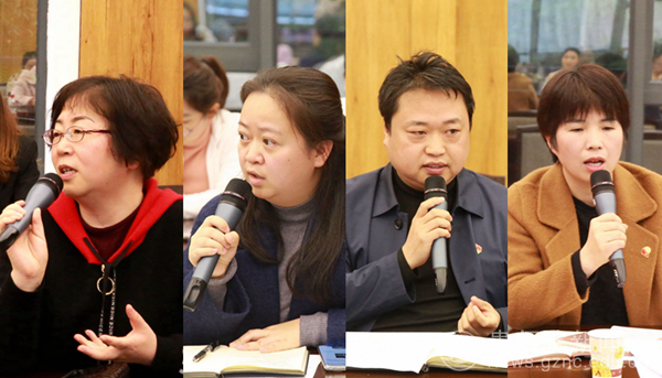 刘红玲汇报了辅导员队伍建设工作情况,并表示学校将以高质量发展、内涵式发展建设为目标,建设一支高素质、高质量、高水平的辅导员队伍。心理咨询中心主任宛蓉表明辅导员要勤于思考,善于沟通,注重个人心理成长,做好生涯规划,为扎实开展学生工作提供保障。校团委副书记罗荣结合自身发展历程,说明了辅导员作为一线工作者要做好职业规划。旅游文化学院副书记冯建国从学生情感问题、理想信念教育两方面举例分析了学生工作中的真实情况。辅导员工作室主持人谭丽琼、吴光梅分别围绕学生工作的立足点和落脚点,表达了学校对辅导员队伍的关心、重视。