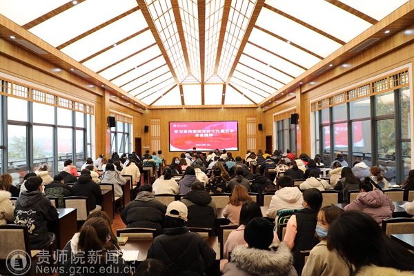 本网讯 12月23日下午,为学习宣传贯彻好党的十九届五中全会精神和中共贵州省第十二届委员会第八次全体会议精神,“印山青年”宣讲团在印山书院二楼开讲。“印山青年”宣讲团全体成员,校级各学生团队负责人,各学院学生骨干等110多名青年学生、教师参加首场学习宣讲。宣讲活动由校学工部部长刘红玲主持。