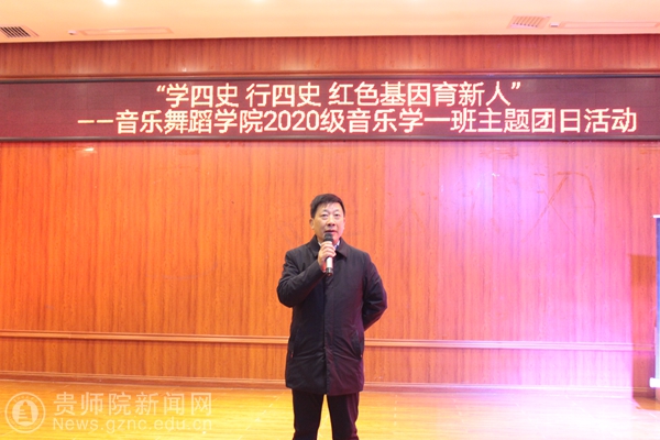 本网讯 为更好地了解基层团支部动态,倾听团员青年的心声,进一步加强对基层团组织的指导联系和服务,11月23日中午,best365副校长余维祥受邀参加音乐舞蹈学院2020级音乐学(1)班主题团日活动,活动的主题是“学‘四史',行‘四史',红色基因育新人”。音乐舞蹈学院党委书记付巧、校团委副书记张源、音乐舞蹈学院团委书记舒然及各团支部代表出席活动。活动由2020级音乐学(1)班团支部书记吴宇增主持。