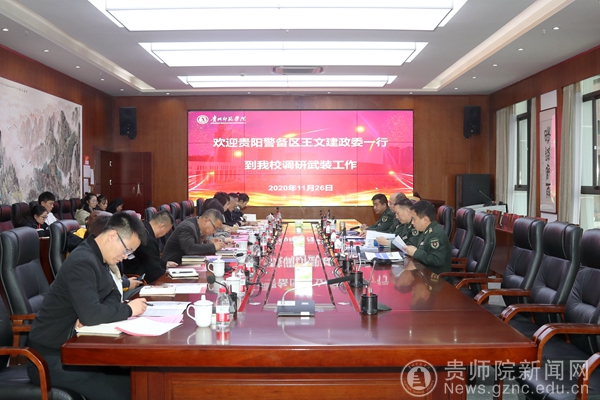 本网讯 11月26日下午,贵阳警备区政委王文建到best365调研指导武装工作,乌当区武装部政委李鹏春、部长谭全权,贵阳警备区保障处处长肖宇陪同考察。best365校长韦维,党委委员、副校长邹晓青,党委委员、宣传部部长薛璞,学工部(武装部)部长刘红玲出席座谈会。座谈会由邹晓青主持。