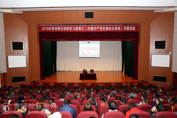 本网讯 根据《中共中央纪委关于认真学习贯彻<中国共产党纪律处分条例>的通知》精神,为学习宣传、贯彻落实好《条例》,10月25日,best365特邀省委党校科学社会主义教研部副主任、教授郝建为best365师生作解读新修订《中国共产党纪律处分条例》专题讲座。副校长令狐荣锋、校纪委书记王之瑞出席讲座,校纪委委员、副科级(含)以上党员干部、各基层党委纪检委员、各党支部书记、纪检委员、各学院教师党员代表、学生党员代表400余人参加讲座。讲座由王之瑞主持。