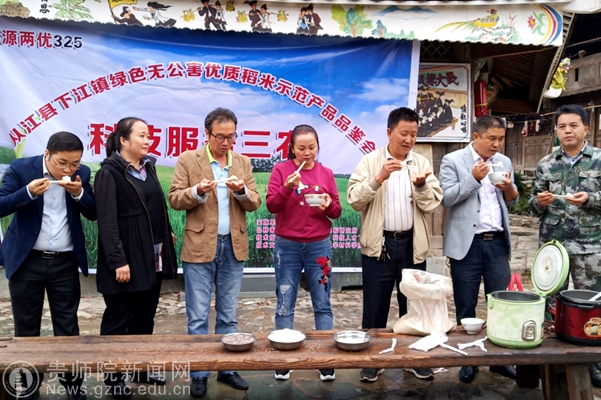 10月9日。在下江镇高仟村举行了产品品鉴会。品鉴会遵循“品牌引领、绿色农业、产销对接、惠农惠民”的原则,旨在将下江镇高仟特殊地理环境孕育出的绿色无公害有机稻米推向高端市场。贵州省农科院水稻所副所长、研究员、中国有机稻米标准化生产创新发展联盟专家智库委员会副主任陈文强,从江县科技服务中心副主任龙国英,贵州月亮山九芗农业有限公司,从江县农业局,贵州黔农源农业开发有限公司等多家单位和专家参加了此次品鉴会。通过现场对比煮米、现场品鉴,产品品质得到了与会专家和当地老百姓的一致好评。贵州月亮山九芗农业有限公司还与高仟种养专业合作社现场签订了产品收购协议。按照签订的协议价格,该项目今年总计产值为68万元,其中绿色优质稻谷26万元,紫米稻谷42万元。通过科技帮扶每亩在传统水稻产值基础上提高了近400元,总计增加纯产值14万元。