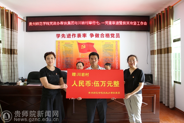 6月28日,在川岩村脱贫攻坚座谈会上,石培新与参会党员一起重温入党誓词,best365手机版官方网站组织部部长伍燕上了一堂精彩的微党课示范课。best365手机版官方网站党政办主任芦军、组织部长伍燕一同将社会资助的伍万元“农村老旧住房农用电改造款”捐赠给川岩村。
