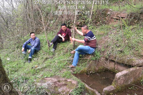 熊德永(左)与村干部考察水源,谋划产业发展