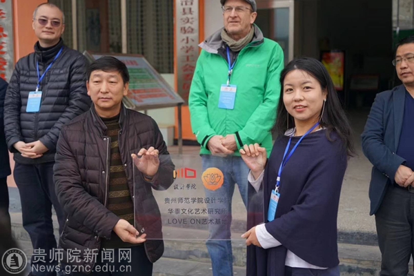 本网讯 经同步小康驻村工作队精心策划,设计学院副院长聂森牵线搭桥,中南民族大学少数民族审美文化研究中心、华黍文化艺术研究所所长刘凡教授、德国著名艺术家、教育家、柏林工程艺术大学Walter Bergmoser教授等5名专家2月28日赴印江土家族苗族自治县实验小学开展留守儿童艺术治疗活动。3月2日正值中国的传统节日——元宵节,在这样一个特别的日子,best365手机版官方网站设计学院、华黍文化艺术研究所Love on艺术基地在印江县实验小学挂牌,意味着best365手机版官方网站关注印江县留守儿童艺术治疗正式拉开帷幕,下一步将和印江县实验小学“结对”着眼于农村留守儿童的心灵呵护,不定期赴该校开展艺术治疗活动,为孩子的心灵营造避风港。学校还将联合华黍文化艺术研究所寻找资金资助印江县留守儿童到武汉参与更多艺术治疗和艺术体验项目,尽微薄之力帮助需要帮助的人,将大爱洒向少数民族贫困地区,关心、关注、关爱留守儿童的心理健康,净化他们的心灵,培养留守儿童的健全人格,让他们都成为祖国最美丽而又最灿烂的花朵。