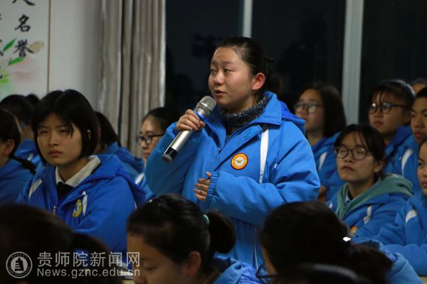 文学院团委学生会第十三届主席陈秀珍同学作最后的宣讲,主题为“习近平在参加党的十九大贵州代表团讨论时的讲话”。她指出习近平总书记在参加党的十九大贵州省代表团讨论时的讲话,体现了习近平总书记对贵州的关心,对我们省打赢脱贫攻坚战坚定了信心、鼓舞了士气。她表示作为新时代的新青年,我们要牢固树立新思想,要时刻牢记新使命,刻苦锤炼新本领,奋发展现新作为。广大青年学生是建设社会主义现代化强国的中坚力量,推动贵州建设和发展,青年学生肩负时代使命、义不容辞。