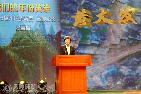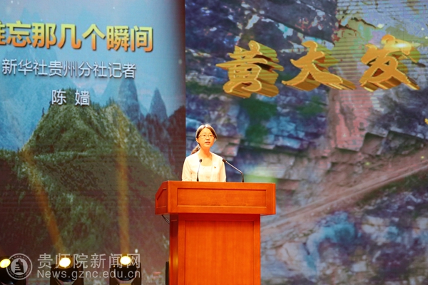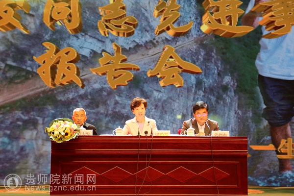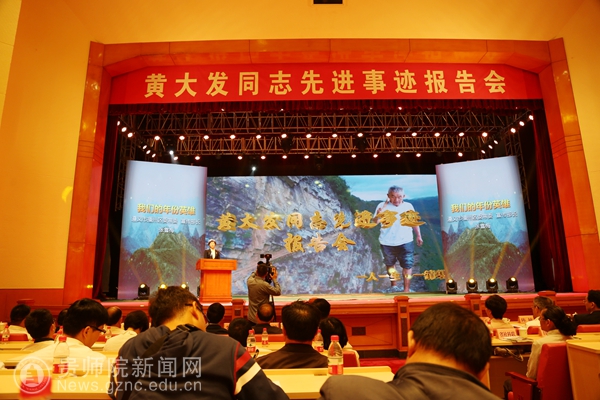 随后,新华社贵州分社记者陈嫱、遵义市播州区平正乡党委书记张文富、黄大发同志外孙女陈燕、水利局原副局长黄著文、宣传部长张雪梅用真挚的感情和生动的实例为大家讲述了原草王坝村支书黄大发同志率领群众,历时36年,靠着风钻、钢钎、铁锤和双手,硬生生在绝壁上凿出一条绕三重大山、过三道绝壁、穿三道险崖,主渠长7200米、支渠长2200米的“生命之渠”,结束了当地长期缺水历史的感人事迹。报告中,报告人几度哽咽,听讲的人也红了眼眶,掌声阵阵叠起,鲜活的黄大发先进事迹和崇高精神感人肺腑、催人奋进。