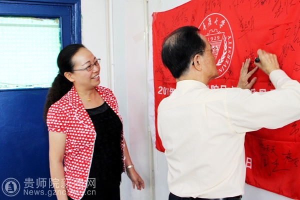 陈万志教授在班旗上签字