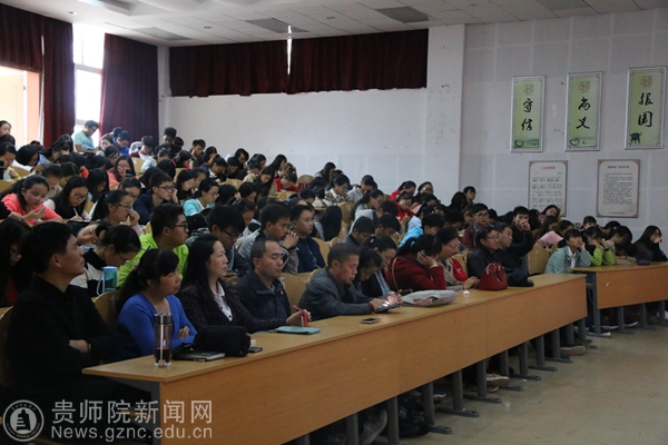 此次讲座从黔地与黔学溯源、黔学奠基和黔人风采三个方面有声有色的展开,从贵州省简称“黔”字的来历到什么叫做黔学;从东汉毋敛人尹珍(字道真)《说文解字》的作品到贵州唯一一个以人名来命名的县——道真县的由来;从为黔学增光添彩的“黔南六家”、“陈氏三杰”到国内很多著名学府都是由贵州人创始;无一不让同学们感触良多,受益匪浅。