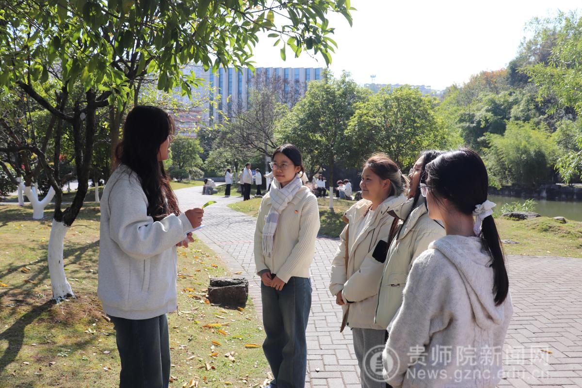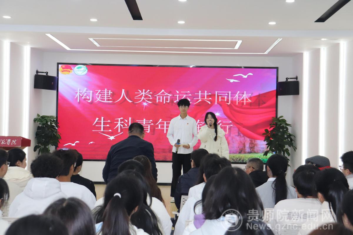 活动以“理论+专业+实践”的形式层层推进。在理论宣讲环节,吴佳慧、彭佳豪二位同学进行“理论宣传二人讲”,以“一带一路”为切入点,从青年视角出发,带领学习人类命运共同体的时代内涵,结合生物科学专业背景,阐述了生态治理、公共卫生合作中的青年责任,强调青年应在推动绿色发展、应对气候变化中贡献智慧,倡导人与自然和谐共生理念,以专业所学守护生态安全屏障,在生物多样性保护与碳中和实践中主动作为。他们呼吁将青春融入生态文明建设的时代浪潮,用实际行动诠释人类命运共同体的青年担当。