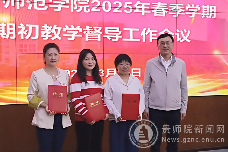 会上,校党委委员、副校长潘运为新加入第六届校级教学督导的教师颁发聘书,物理与电子科学学院高成贵作为新任校级督导代表进行了表态发言。第六届校级教学督导全体成员、质评办全体工作人员共20余人参加了此次会议。