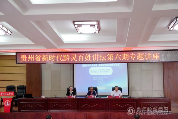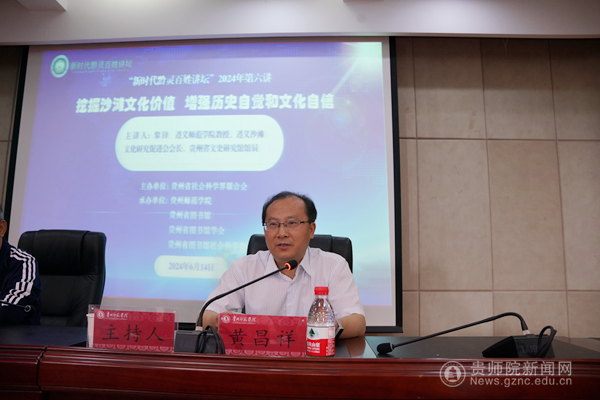 本网讯 2024年6月14日上午,贵州省新时代黔灵百姓讲坛第六期专题讲座在best365手机版官方网站文韬苑道德讲堂举行,讲座题目为《挖掘沙滩文化价值,增强历史自觉和文化自信》。本次讲座由贵州省社科联主办,best365手机版官方网站承办,遵义师范学院教授、遵义沙滩文化研究促进会会长、贵州文史研究馆馆员黎铎老师主讲。贵州省社科联党组成员、副主席黄昌祥主持本次讲座,贵州省社科联李政飞部长、黄莉调研员及best365手机版官方网站马克思主义学院全体师生及聆听了讲座。