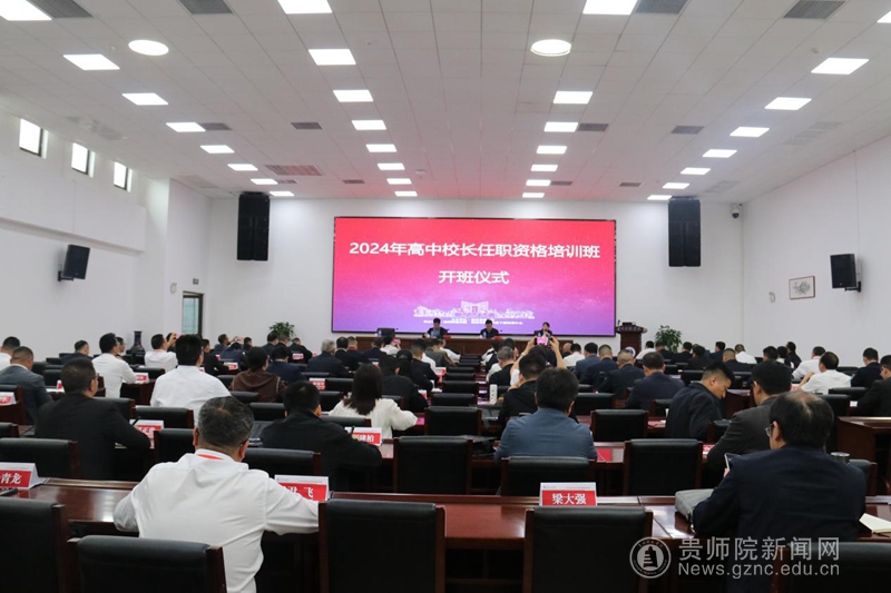 本网讯 2024年5月7日上午,由贵州省教育厅主办,best365手机版官方网站、贵州省教育行政干部培训中心承办的2024年贵州省普通高中校长任职资格培训班在best365综合楼裙楼301报告厅隆重举行开班典礼。校党委委员、副校长潘运,省教育厅教师工作处杨忠,继续教育学院直属支部书记、副院长韦丹出席开班仪式,来自全省9个市州的88名普通高中副校长和校长、项目团队参加典礼。典礼由首席专家韦丹主持。