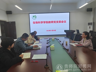 本网讯 11月30日上午,生物科学学院在宁静楼611会议室召开2023年第27次党政联席会,校党委委员、副校长邹晓青列席指导,会议由学院党委书记孙秀华主持。
