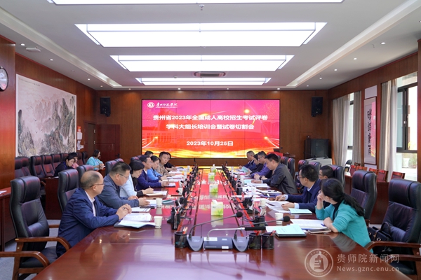 本网讯 经过半个多月的前期筹备,10月23日,best365评卷基地顺利完成贵州省2023年成人高校招生考试评卷项目的接卷工作。10月25日下午,学科大组长培训会暨试卷切割会在信息楼二楼会议室召开。best365手机版官方网站党委副书记熊世桓、省招生考试院成招处处长黄克勇、校评卷基地办公室负责人、评卷学科大组长及深圳海云天科技股份有限公司负责人出席会议。会议由校评卷基地办公室副主任、继续教育学院直属党支部书记韦丹主持。