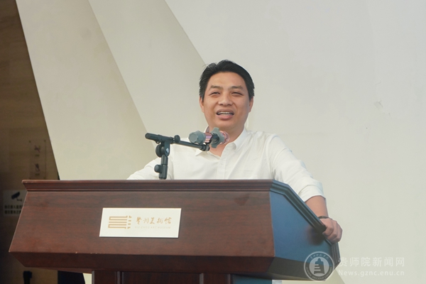 聂森院长致辞中对二位老师能在贵州省美术馆展出表示热烈祝贺,贵州省美术馆是贵州美术展示最高殿堂。对贵州省美术馆、对帮助二位成长有过帮助的老师们表示了衷心的感谢。他还就学院科研、教学创作三支队伍的成果作了简述,他表示廖江华、郑超文两位老师是创作型的重要代表,两位位不仅勤奋,而且将艺术创作中的所思与教学中,此次展览的呈现,是学院多年发展的里程碑式的呈现。也希望贵州省美术馆、贵州省美协、以及兄弟院校的专家前辈能一如既往支持学院发展。