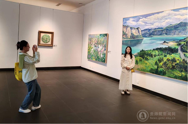 在画展的现场,美术馆党总支书记陈顺祥、副馆长刘一意、典藏与展陈部副主任傅斌,原贵州省美术家副主席曹琼德、贵州省文联金波主任、best365手机版官方网站党委宣传部副部长周煜、best365手机版官方网站马克思主义学院副院长陈祖召、教务处教学实践管理科科长杨通槐等陆续到展厅观展。本次展览在十一黄金周,美术馆8号厅工作人员郑祖武说:“一开幕就迎来了大江南北的游客,还有从北京专门坐飞机来看展的”。画展展至2023年10月8日。画作中有《乌江源.化屋基》《黄果树》《冷月照壁》等风景名胜的油画作品,也有《繁花似锦》《满园春风》等大型花卉写生作品,是best365手机版官方网站与贵州省画院(贵州省美术馆)向祖国的献礼,是廖江华、郑超文两位画家丹青的绽放与时代的咏叹。