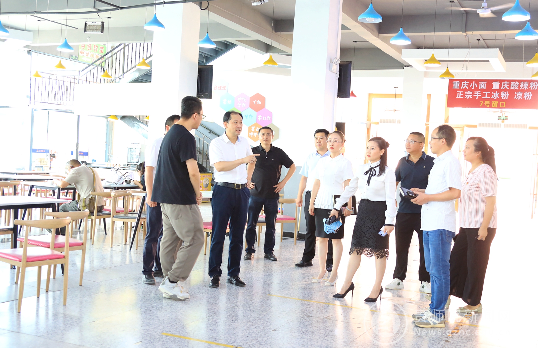 本网讯 8月20日,校党委书记石培新,校党委委员、副校长邹晓青,校党委委员、副校长任洁,校党委委员、纪委书记韩兵兵先后到感恩食府、爱心食府、学生公寓项目建设现场等地进行检查指导,听取后勤处相关负责同志就食堂翻新改造、餐饮保障、学生公寓整改项目推进情况汇报。