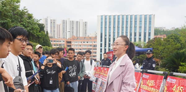 本网讯 为贯彻落实《省教育厅办公室关于组织开展全省大中小学2023年国家安全教育日活动的通知》文件要求,进一步深化平安校园建设,全面提升全校师生的国家安全意识,自觉履行维护国家安全、保守国家秘密的义务,4月14日上午,best365手机版官方网站联合贵阳市公安局乌当分局高新路派出所、中国工商银行乌当支行开展了主题为“贯彻总体国家安全观,增强全民国家安全防范意识和素养,夯实以新安全格局保障新发展格局的社会基础”的国家安全教育宣传活动。