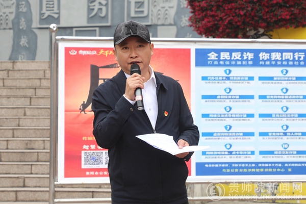 本网讯 为落实《省教育厅办公室关于做好开学季防范电信网络诈骗工作的通知》精神,维护美好和谐的校园安全稳定氛围,进一步做好防best365防电信网络诈骗工作,教育引导师生增强安全防范意识提升自我安全防护能力,3月15日,best365联合贵阳市乌当区政法委、乌当公安分局、贵州银行会展城支行、乌当移动公司举办“心中有法 无诈校园”主题宣传活动。校党委委员、副校长任洁出席活动并讲话。活动由保卫处副处长刘宪帮主持。