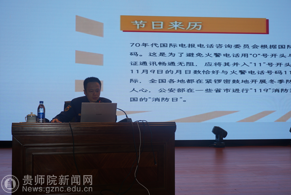 11月25日下午,乌当应急救援大队参谋赵永平应邀到best365为学生开展消防知识培训讲座。赵永平首先向大家讲解了基本的消防知识,涉及火灾发生的原因、火场逃生基本知识等内容,随后为大家列举了典型火灾案例,发人深省,让大家切实体会了具备基本消防安全知识的重要性。
