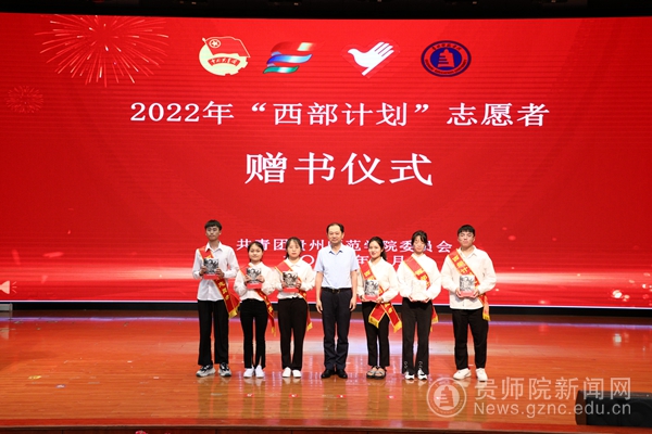 出征仪式上,石培新为西部计划志愿者代表赠予《习近平的七年知青岁月》书籍,鼓励他们在基层实践中成长成才。韦维和其余与会校领导为“西部计划”志愿服务队和暑期“三下乡”社会实践服务队授旗。