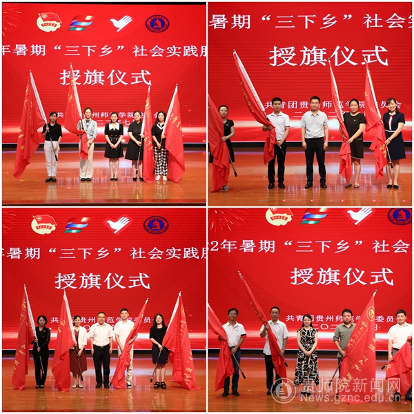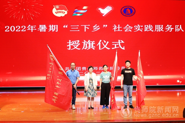 与会校领导为暑期“三下乡”实践队授旗
