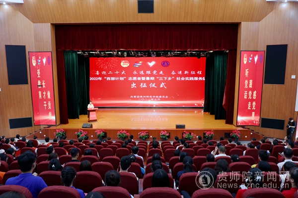 各相关职能部门、各学院基层党委、团委负责人、“三下乡”团队带队老师、西部计划志愿者代表及暑期三下乡实践队代表300余人参加出征仪式。