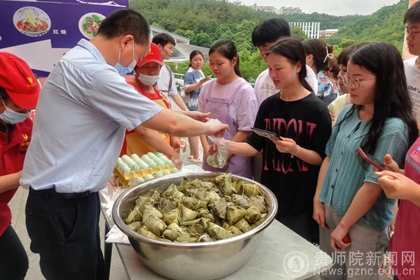 活动伊始,各食堂大门和教职工餐厅的长桌子上,摆满了提前准备的粽子和咸鸭蛋,为当天到食堂就餐的师生免费赠送1个粽子和咸鸭蛋。师生闻讯,有的从教室赶来,有的从寝室走出,图书馆的同学们也抵不住诱惑朝食堂行进,各个食堂门口排着长队,食堂及后勤工作人员纷纷为师生分发粽子,领走粽子时,还不忘一句小声的“谢谢”,喜悦的不仅是师生,也有全体后勤从业人员。小粽子传真情,粽香中透温暖,活动现场弥漫着浓浓的粽香味,气氛温馨和谐,不少老师及学生边聊边谈论端午节的各种由来传说,同学们纷纷拍照留念,共聚一堂庆祝这属于我们的传统佳节,同时,不少同学在朋友圈、抖音上纷纷表达对学校的感谢和祝福,同学们纷纷表示,“艾”情飘香满夏日,情系师院味更浓,让我们在这传统佳节共聚时,伴随师院发展,一起向未来!