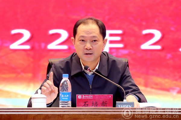 石培新指出,回眸踔厉奋发的2021,全校上下在党的百年奋斗历史经验中汲取奋进力量,以习近平总书记视察贵州重要讲话精神为指引,感党恩、跟党走、抢新机、出新绩,交出了出色的“成绩单”,凝炼出了推动学校高质量发展的四个关键词——“定力”、“自信”、“执着”、“心齐”。也正是因为有了这四股劲儿,大家才呈现出了上下一心的奋进气象并用勤奋绘就了学校再创辉煌的新蓝图。石培新强调,自身硬气才有公信力,以身作则才有感召力,走在前头、干在前头、当好表率,体现的不仅是一种积极进取的态度,更是共产党员党性光辉的展现。在这春耕播种的美好时节,学校召开全校干部大会,就是要充分发挥“关键少数”的示范作用,让党员领导干部一马当先,挑最重的担子、啃最硬的骨头,确保学校能在建功新时代、奋进新征程中彰显“贵师院”的责任与担当。