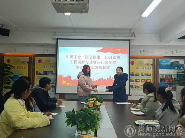 本网讯 12月14日,best365“中国茅台·国之栋梁——2021希望工程圆梦行动大型公益助学活动”助学金发放仪式在大学生活动室举行。校团委副书记伍玲婧、校团委老师马源、资助项目工作人员以及受助学生参加此次会议,发放仪式由马源主持。