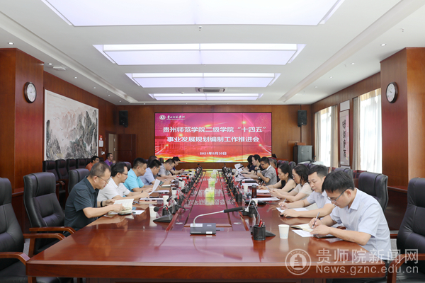 最后,郭文对二级学院“十四五”子规划编制推进工作作了指导讲话。一是转变观念,转“编”为“研”。二级学院要在总结“十三五”办学成就的基础上,研判高等教育发展的最新形势、问题与挑战,提出可行性发展举措。二是高度重视,加强调研。多层次、多渠道、多面向的调研活动是研制“十四五”子规划的基础。二级学院党政领导班子要高度重视,强化调研的数量和质量,研制符合二级学院实际和发展要求的子规划。三是加强学习,做好顶层设计。要强化对国家、贵州省、学校以及兄弟院校的发展形势和发展政策的学习,针对学院发展要求做好谋篇布局。四是统筹谋划、加强论证。二级学院子规划的发展定位、核心指标、发展举措要加强论证,确保做到科学、准确、合理。