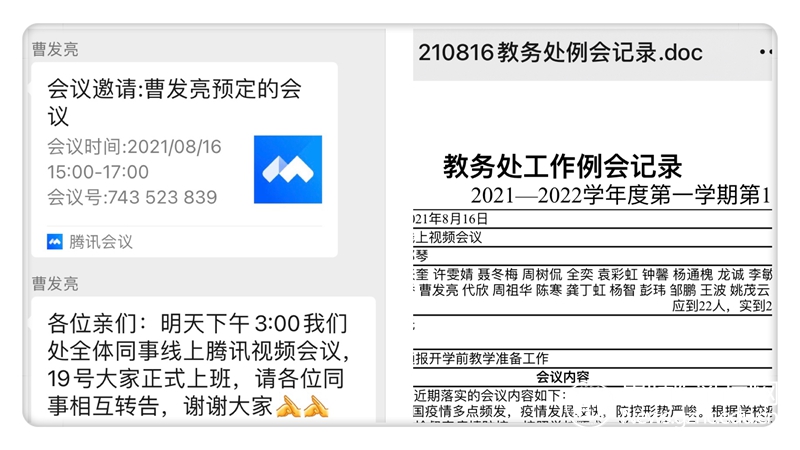 8月16日下午,教务处全体人员召开线上视频会议,邓琴专门强调了要提高疫情防控的意识,并就疫情防控、线上教学、实习实训、教室清查、教材发放等工作进行讨论和部署安排。
