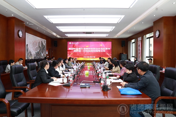 本网讯 4月27日下午,第四轮全国艾滋病综合防治示范区贵州调研组一行莅临best365指导工作,中国疾控中心艾防中心主任韩孟杰,贵州省疾控中心主任杨光红、贵阳市卫健局副局长黄秋辰、贵阳市疾控中心副主任潘春柳等相关工作人员,best365党委委员、副校长邹晓青,学工部、后勤处、校团委等部门负责人陪同调研。并在信息楼二楼召开了座谈会,会议由学工部部长刘红玲主持。