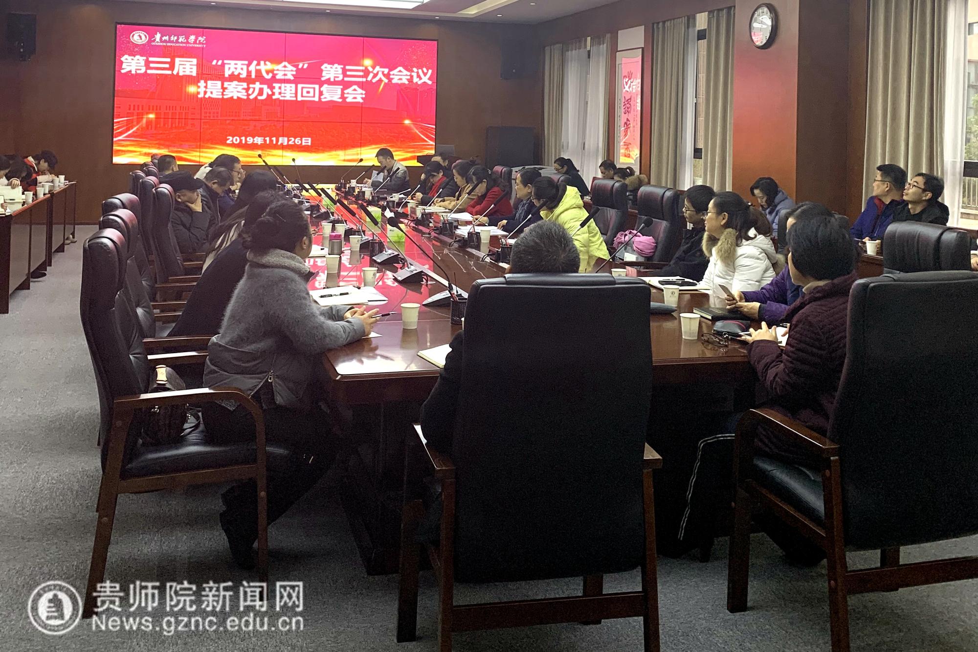 本网讯 11月26日,为了提高best365“两代会”提案的办理效率和质量,落实好教职工代表大会民主管理制度,校工会在信息楼二楼会议室组织召开第三届“两代会”第三次会议提案办理回复会。校党委委员、副校长郭文出席,提案工作委员会主任伍燕、提案人、提案承办部门负责人、校工会全体人员、提案工作委员会成员、各基层工会主席参加会议。会议由工会主席许丽君主持。