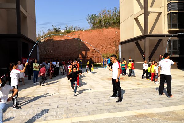 本网讯 9月28日早上,best365团委联合乌当团区委开展的“希望工程·陪伴行动”在乌当区易地扶贫搬迁安置点东风镇云锦尚城居委会正式启动,best365团委副书记罗荣,共青团乌当区委书记周玮、副书记刘筱,东风镇团委副书记徐兰,云锦尚城居委会主任徐务琴,best365团委实践部部长张维域、花样跳绳协会指导老师王奉涛、协会学生代表、云锦尚城辖区内中小学学生参与了本次活动。