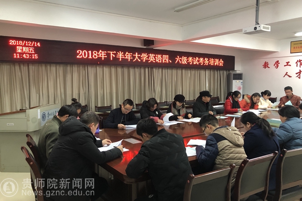 12月14日中午,刘宪帮在教务处会议室组织全体考务工作人员召开培训会,就本次考试概况进行通报,按要求进行了业务培训和纪律培训,全体考务工作人员与考务办签订工作责任书。