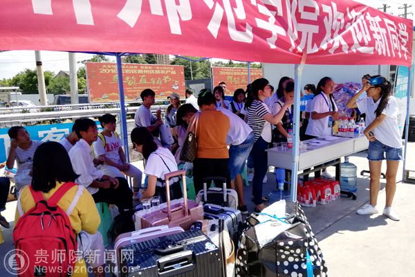 为更好的完成迎新工作,通过大学生联合会、大学生社团联合会、大学生艺术团、风华通讯社和新媒体协会的同学们自愿报名、校团委选拔等程序,最终有114名来自各个学院的同学成为迎新志愿者。迎新志愿者们积极准备、统一管理、服从安排,以昂扬的斗志、热情的服务、青春的风采展现了师院人对新学子的欢迎和关怀。志愿者服务以校内、外建立服务站为主要形式,分别在火车站、金阳客车站、客运东站、高铁东站、贵阳北站、校内等6个地方设立接待点与咨询点。早上6:30-7:00,在校团委老师的带领下,校外服务站的志愿者们搬好物资,分别奔赴火车站、金阳客车站、客运东站、高铁东站、贵阳北站,积极地投入到新生的接待工作当中,并为新生介绍学校基本情况和基本报名秩序,良好的展现了学校的第一张名片。校内服务站中,分别在校门口、逸夫楼附近、鉴湖旁设置了咨询点和服务点,为新生提供行李存放搬运、解说报到流程、维持报名现场秩序等服务。