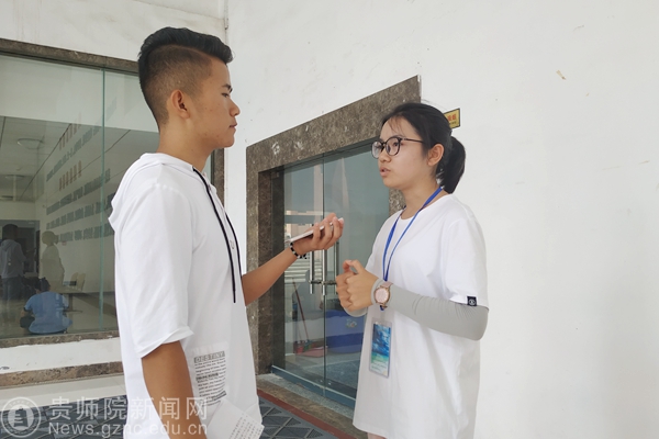 名辅导员谭丽琼老师是第七次参加迎新工作了,她非常有感触的说今年的新生报到流程比往年有了很大的简化,今天只需要持录取通知书和学生档案就可完成报到,其他材料都放到后期来完成。为的是节约排队时间,让新生尽快的去处理其他事项,也算是在炎炎夏日给新生送去的一丝清凉。