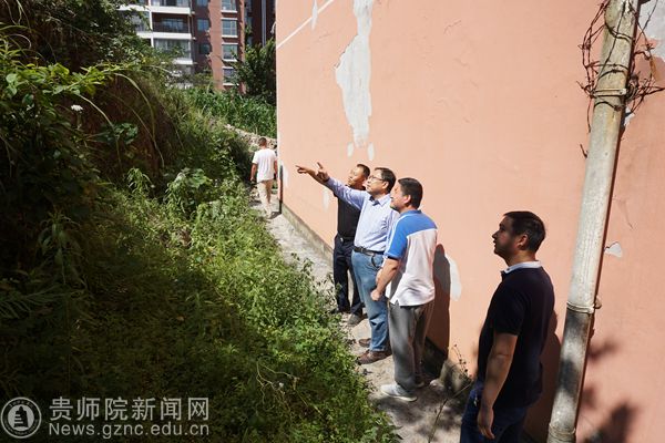 本网讯 进入汛期,为做好汛期灾害防范工作,杜绝隐患,确保师生安全。根据近期省教育厅文件《关于进一步做好汛期学校安全工作的紧急通知》精神,6月7日下午,由副校长令狐荣锋带队进行校内汛期安全检查,保卫处、学工部、后勤处、基建处负责人,保卫处全体工作人员、航天物业管理公司负责人参加。