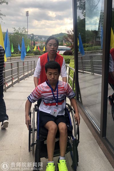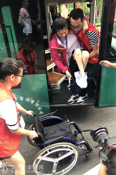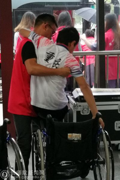 志愿者帮助重残运动员