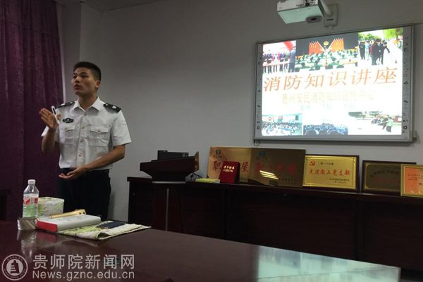 廖超教官进行消防安全知识讲座